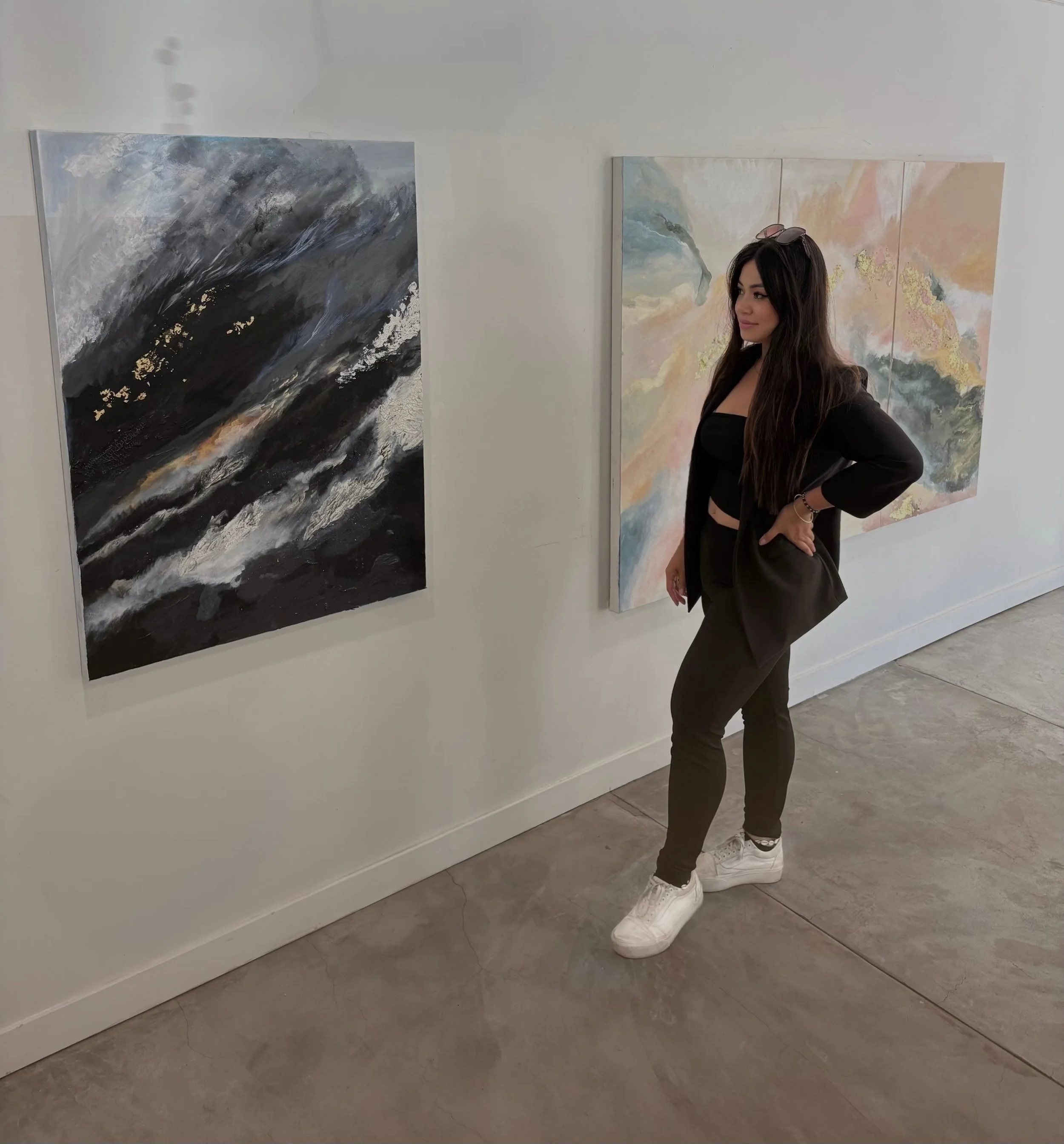 “I take an emotion, a thought, or even a single word, and translate it onto the canvas. In doing so, I experience a sense of revelation—each piece unfolding as I build it. The journey is a release of stories, woven between the lines. The process of creation isn’t always neat or pretty, but that’s what makes each piece unique as it starts to form its own identity.”
